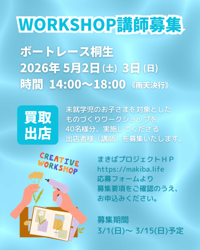 ・講師業のため、お子さま連れ出店はお断りします。また、実施中、ご家族が ブース内に留まらないようにしてください。