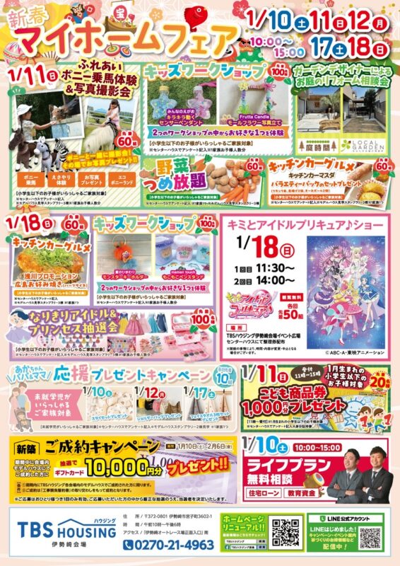 2026/ 01~ 【1月】TBSハウジング群馬会場 このイベントについて ▼出店者様へ 請求書は必ずこちらの雛形を使ってください ワークショップ請求書_雛型 開催期間 2026年01月11日(日) 〜 2026年01月18日(日) 時間 10:00~15:00 出店申し込み受け付け状況 募集終了 場所 TBSハウジング群馬会場 出店者一覧